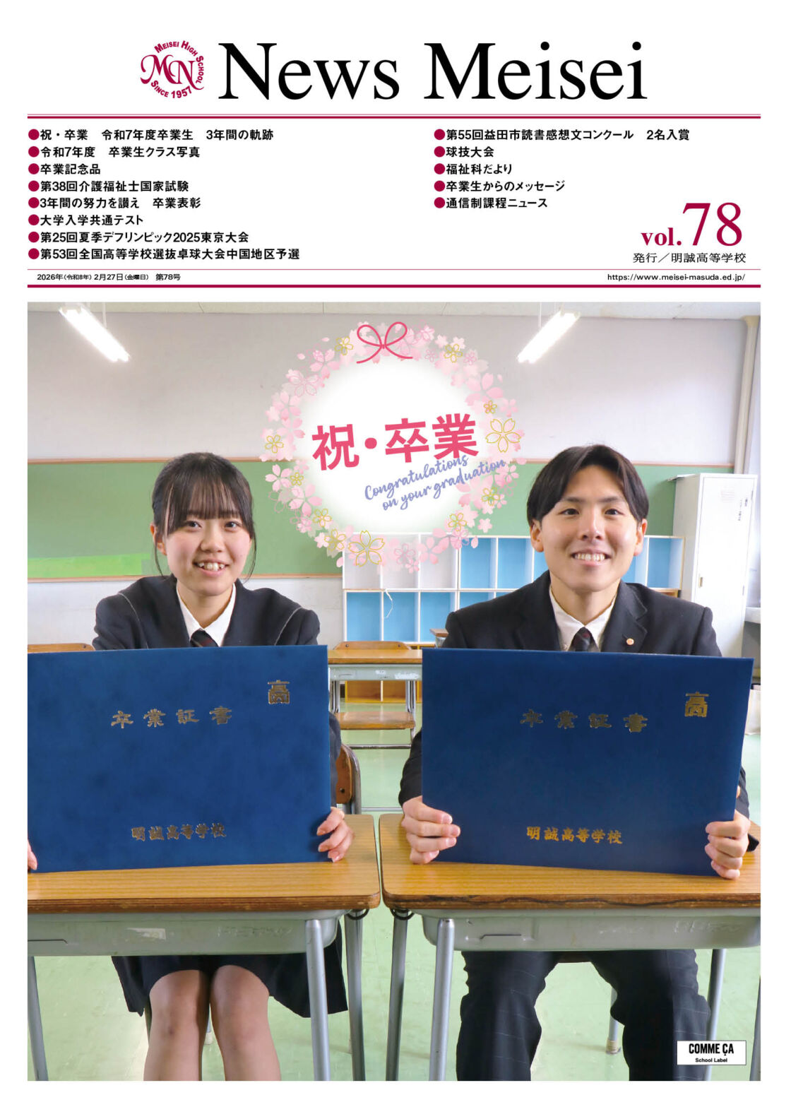 2026年3月1日(日)発行・祝・卒業 令和7年度卒業生 3年間の軌跡